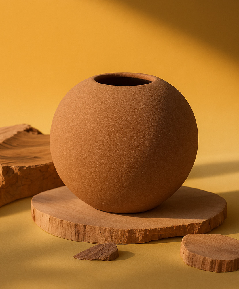 Handcrafted from earthenware clay, its rounded, balanced form is complemented by a soft Cinnamon Clay tone — a muted light brown with natural warmth. Designed without excess, it allows the material and shape to take center stage.